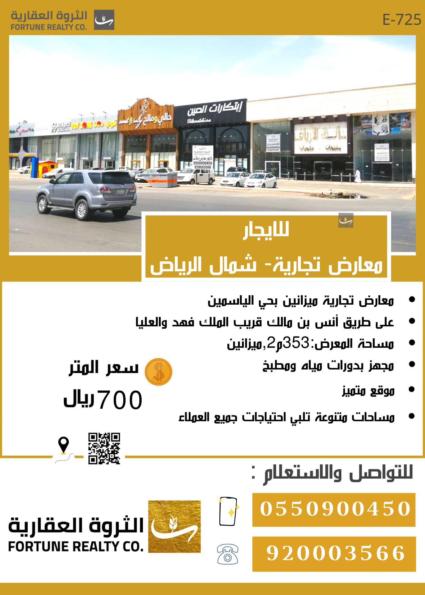 شركة الثروة العقارية On Twitter للايجار معارض تجارية بشمال الرياض الحي الياسمين على طريق انس بن مالك المساحة 353م2 ميزانين رقم الكود E 725 لمزيد من استفساراتكم رجاء التواصل علي 0550900450 920003566 رمضان 2020 عقارات الرياض