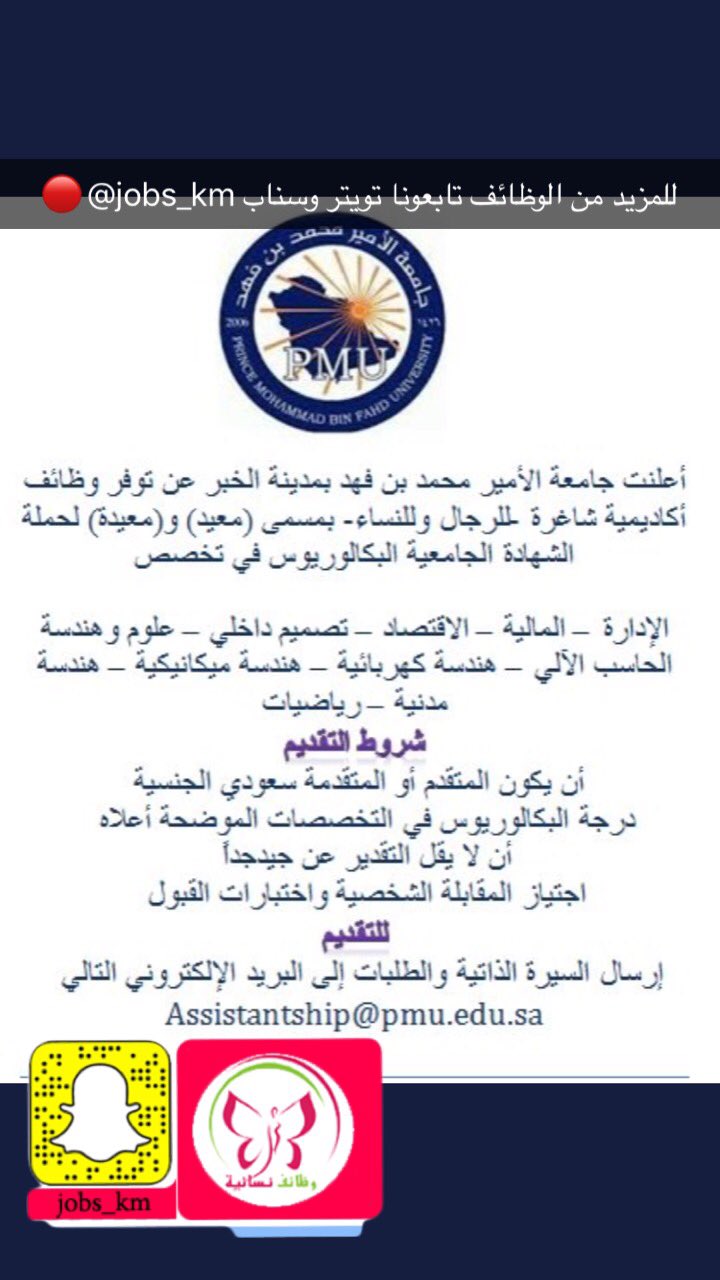 توظيف السعودية على تويتر وظائف اكاديمية شاغرة للرجال و النساء بجامعة الأمير محمد بن فهد بمدينة الخبر للتفاصيل بالإعلان المرفق Https T Co Wzbbmsxb3e