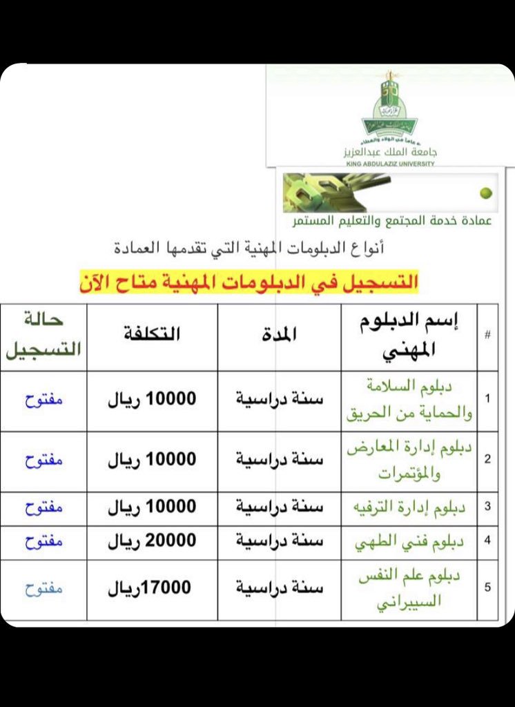دبلوم جامعة الملك عبدالعزيز