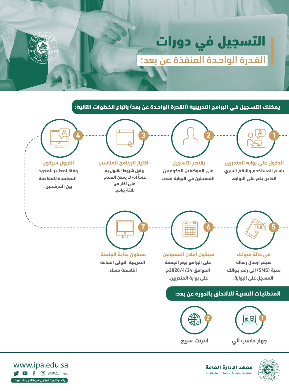 معهد الإدارة العامة ينفذ برامج القدرة الواحدة عن بعد