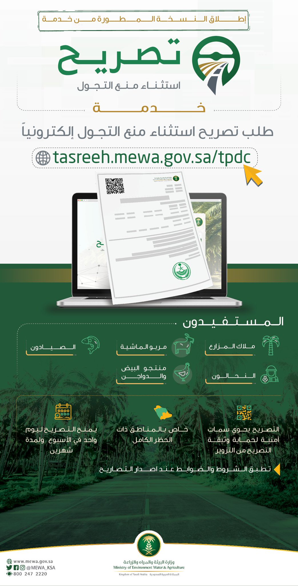 وزارة البيئة والمياه والزراعة On Twitter أطلقت وزارة البيئة والمياه والزراعة النسخة المطورة من خدمة تصريح لاستثناء منع التجوال